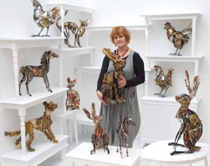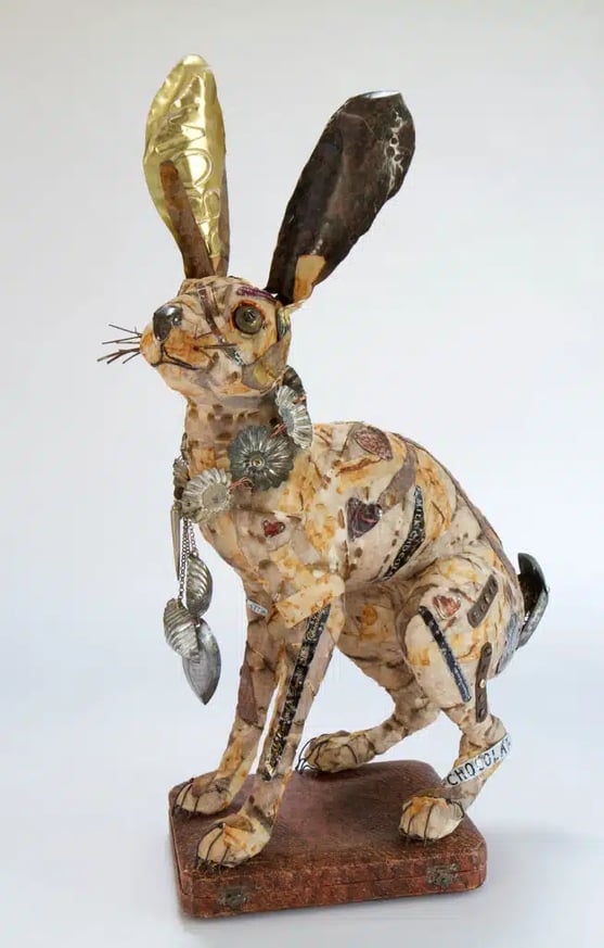 Barbara Franc has been a mixed-media sculptor for over 30 years. Animals are her primary inspiration, and she increasingly uses recycled and discarded materials as she enjoys the challenge of transforming something with history into something new and exciting.
