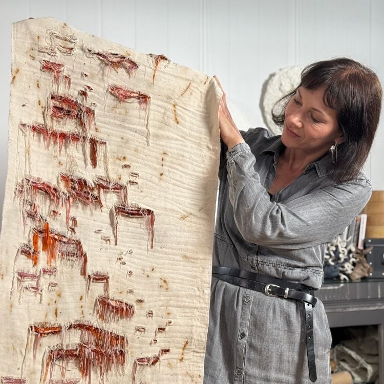 Tina creates large-scale textile abstractions and sculptural work that attempt...